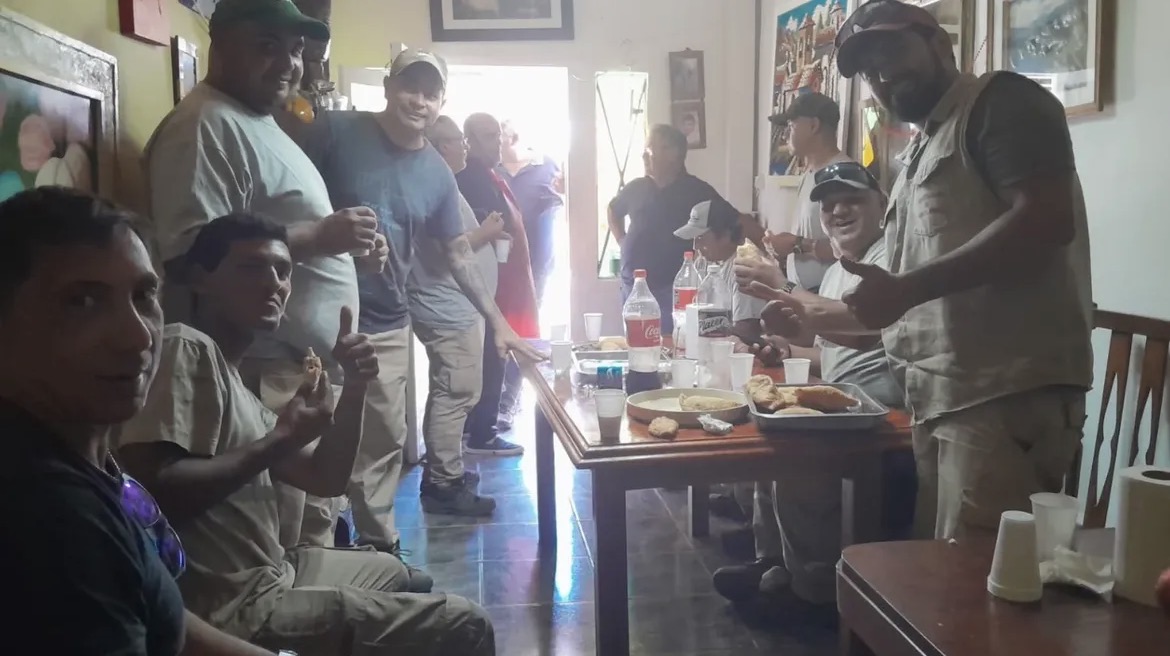 Ocurrió en un domicilio de Villa Argentina, un vecino agasajó al equipo de asfaltado en frío por la mejora en su cuadra