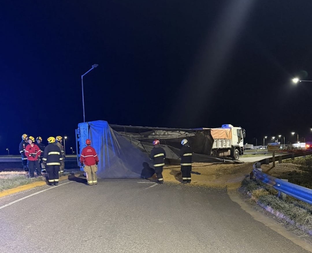 Vuelco de acoplado en el acceso a la autopista: sin heridos