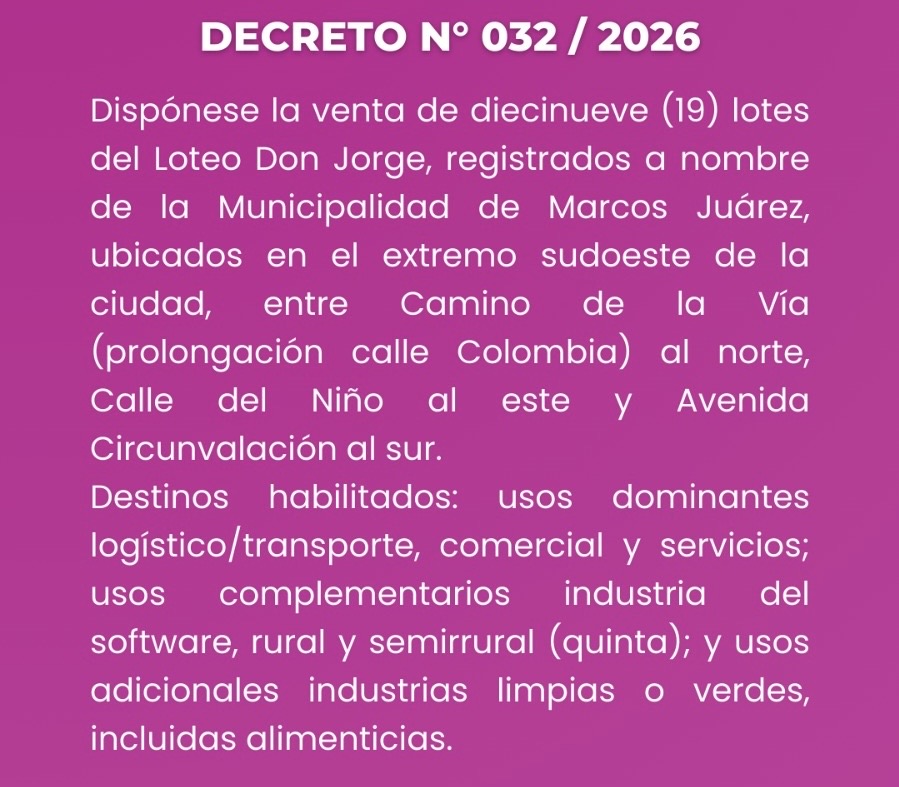 Municipalidad de Marcos Juárez: DECRETO N° 032 / 2026