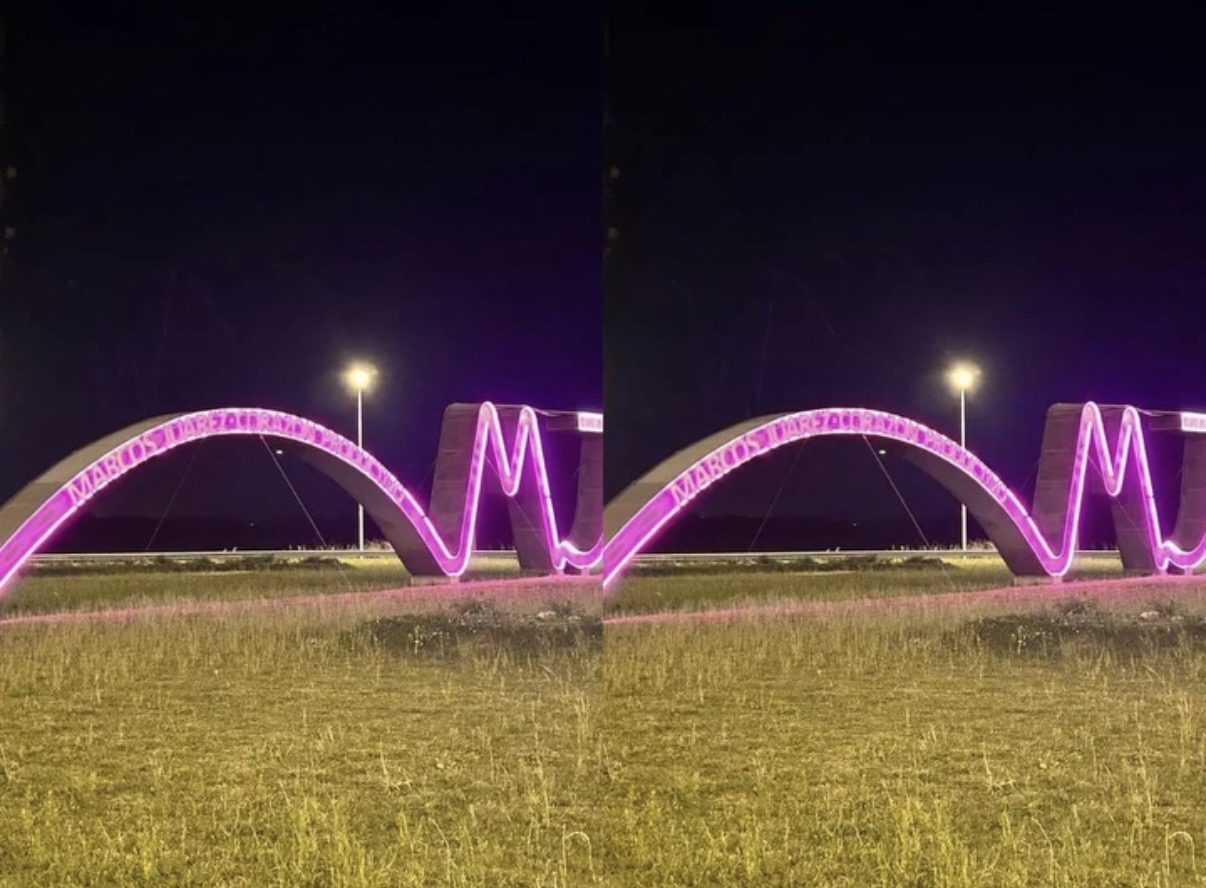 El acceso principal a Marcos Juárez se iluminó de rosa por el “Octubre Rosa”