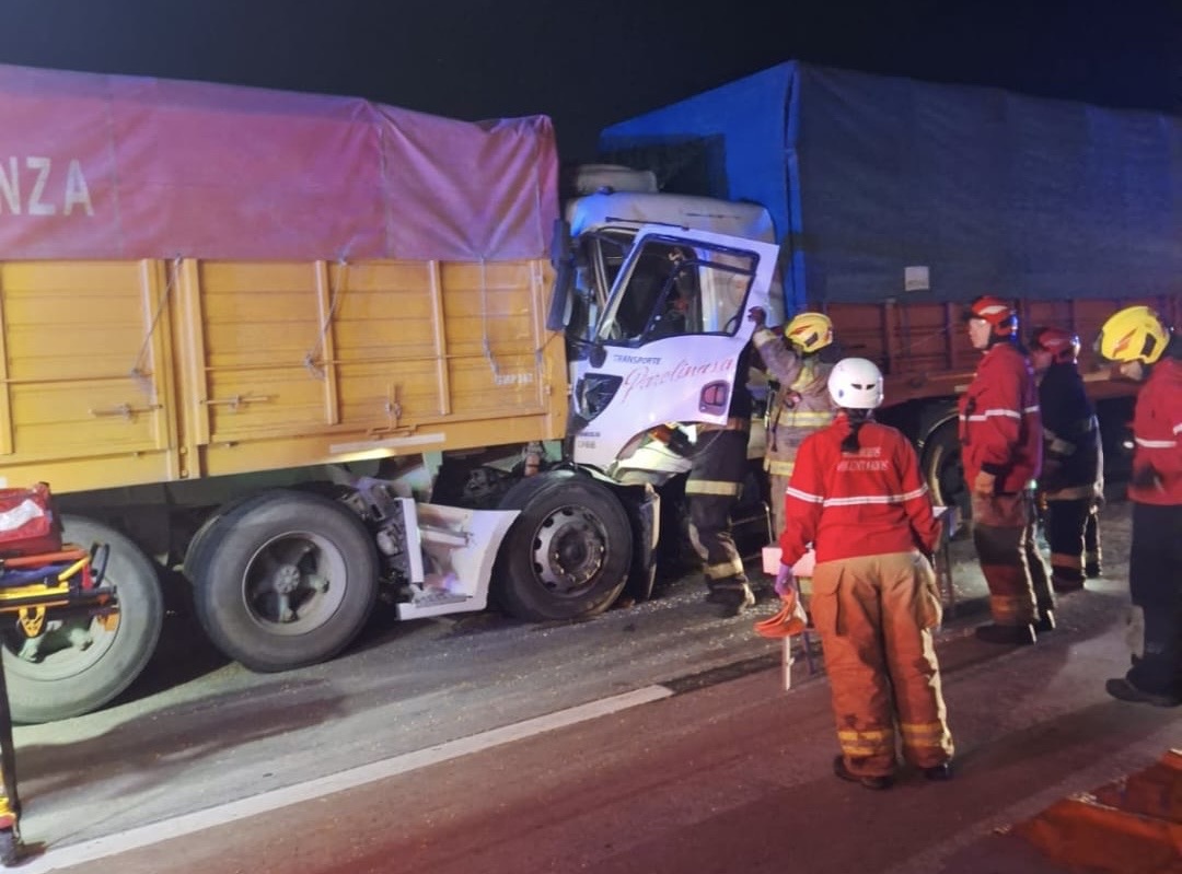 Accidente entre dos camiones en la Autopista dejó un conductor atrapado